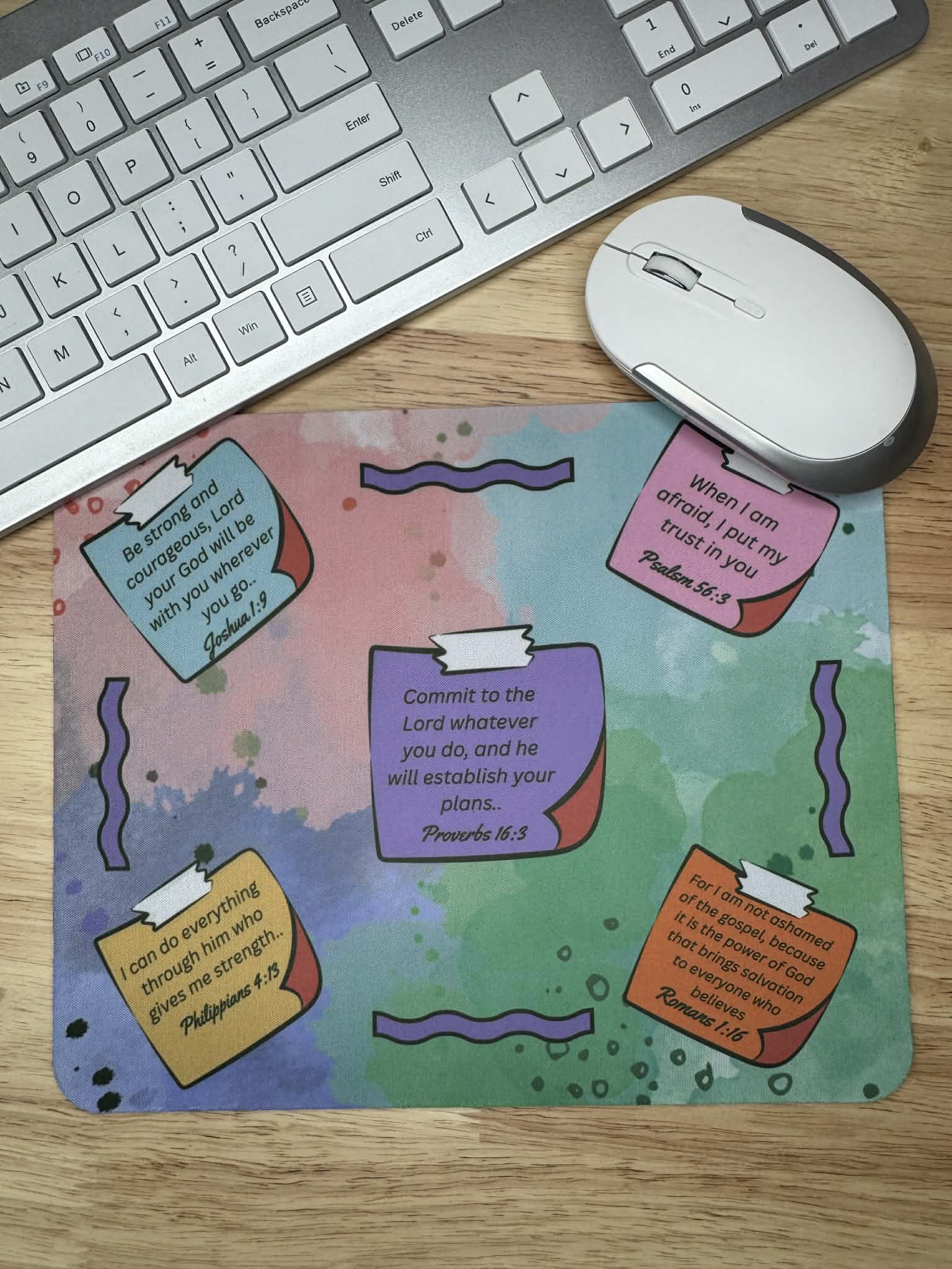 This beautiful Bible verse mousepad is the perfect addition to your workspace.