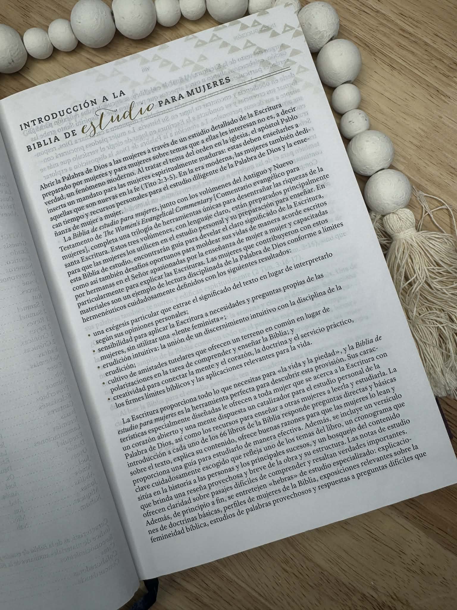 La Biblia de Estudio para Mujeres te dará herramientas para profundizar más en la Palabra de Dios. Tal vez el aspecto más poderoso de esta Biblia son las "hilos" de estudio especializado tejidas con esmero de principio a fin, que te señalan la historia más grande de Dios y permiten que el Espíritu Santo escriba Sus verdades reveladas en tu corazón.