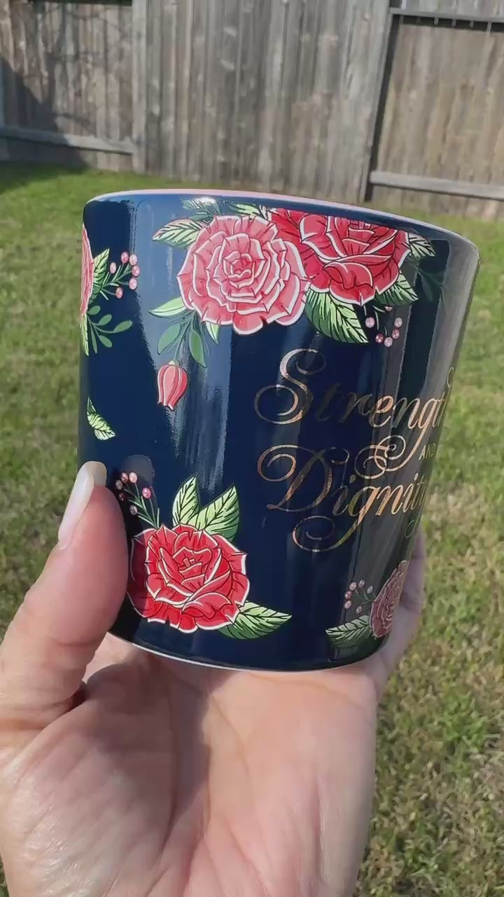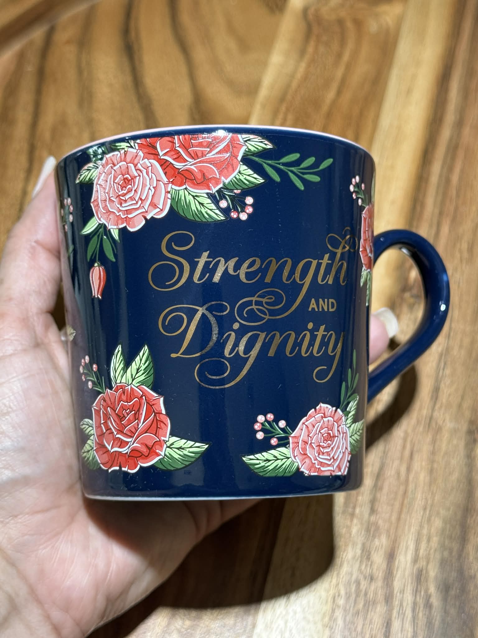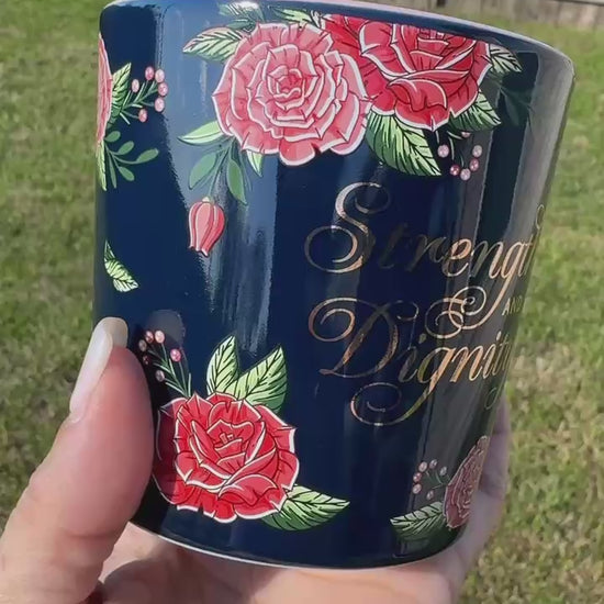 Strength and Dignity Pink Roses Ceramic Coffee Mug - Proverbs 31:25
